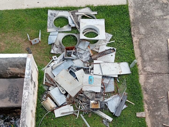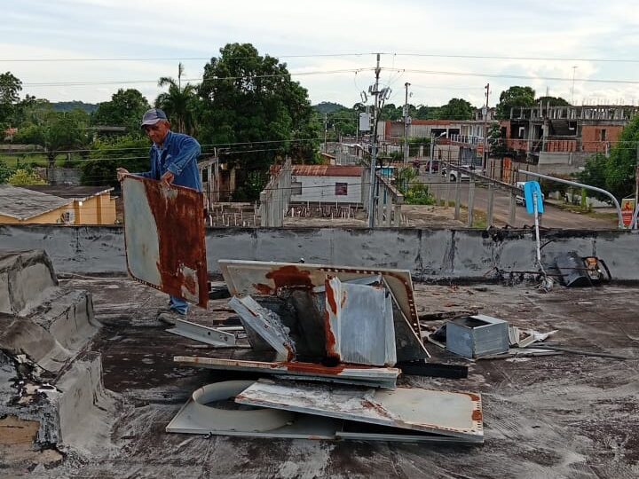 Durante la primera fase de mantenimiento, se observó una gran cantidad de escombros y desechos ferrosos, así como partes de aires acondicionados que están siendo retirados para facilitar el proceso de impermeabilización. Este trabajo es fundamental para prevenir las filtraciones que han causado un deterioro significativo en las instalaciones.